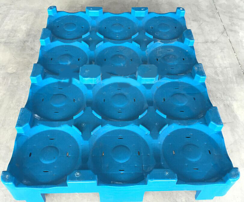| Palettes en plastique spécialement conçues pour le transport de bouteilles d'eau de 5 gallons. |