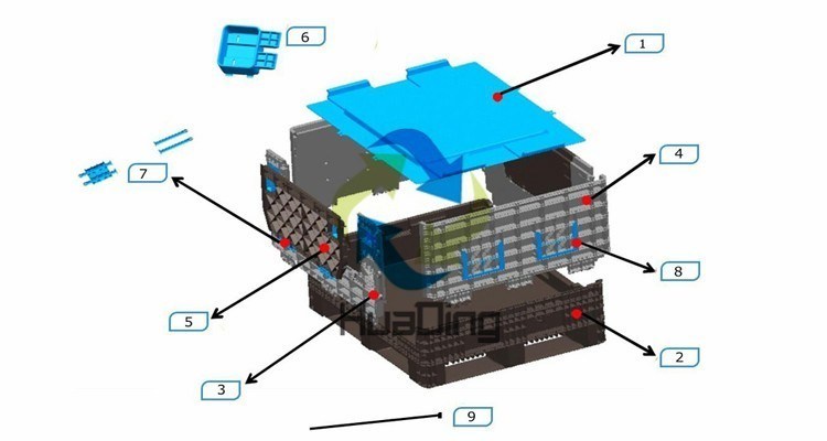 1) Fabriqué en PEHD, résistant aux acides, aux algues, anticorrosif, antipoussière et à haute intensité 2) Avec 3 coureurs ou 9 pieds de fond, disponible pour le lecteur manuel et le chariot élévateur, pliable, empilable 3) Peut être équipé de roulettes, de couvercles et de buses 4)Utiliser judicieusement pour les emballages de matériaux solides, liquides, en poudre et pâteux, tels que les pièces automobiles, les tissus d'habillement, les fruits et légumes, les poudres métalliques, etc. 5)Sont largement utilisés dans les domaines du testicule et de l'impression, de la construction de machines, des pièces automobiles, de l'industrie chimique, de l'alimentation, des produits pharmaceutiques médicaux, des entrepôts.l'industrie de la plantation et de l'aquaculture, etc.. | |
